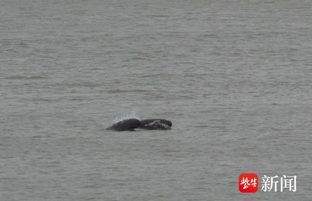 两只江豚结伴游出江面