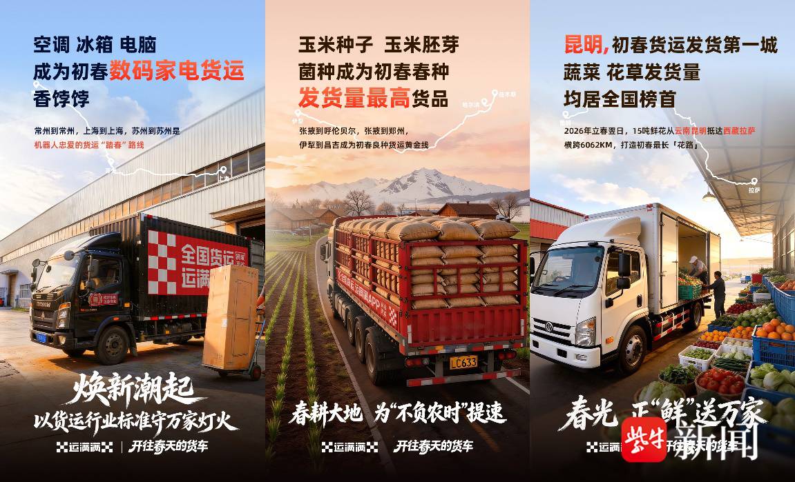 “每年这个时候花最多。”常年奔跑在珠三角的徐帅,在春节期间也没有休息,满是干劲,“广东过年喜欢摆放花花草草,运多了,车厢里都能飘着花香。”运满满数据显示,2026年立春后首月,昆明、广州、成都是花草花卉发货前三城市。