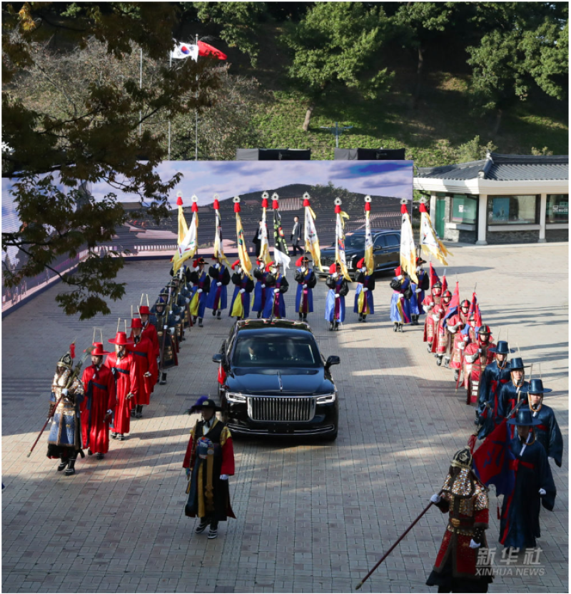 当地时间11月1日下午,国家主席习近平出席韩国总统李在明举行的欢迎仪式。
