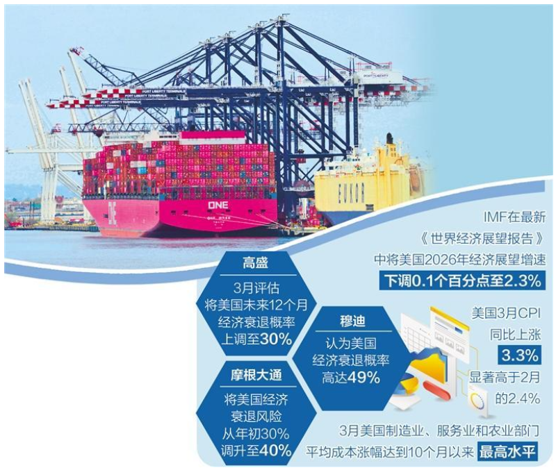 在经济增长预期方面,美国官方部门的立场与市场机构态度存在显著的“温差”。从各大机构研究情况看,美以伊战事加剧了全球能源体系价格波动和供应链受阻,同步对美国国内油价和供应链造成反噬,冲击其经济增长动能。
