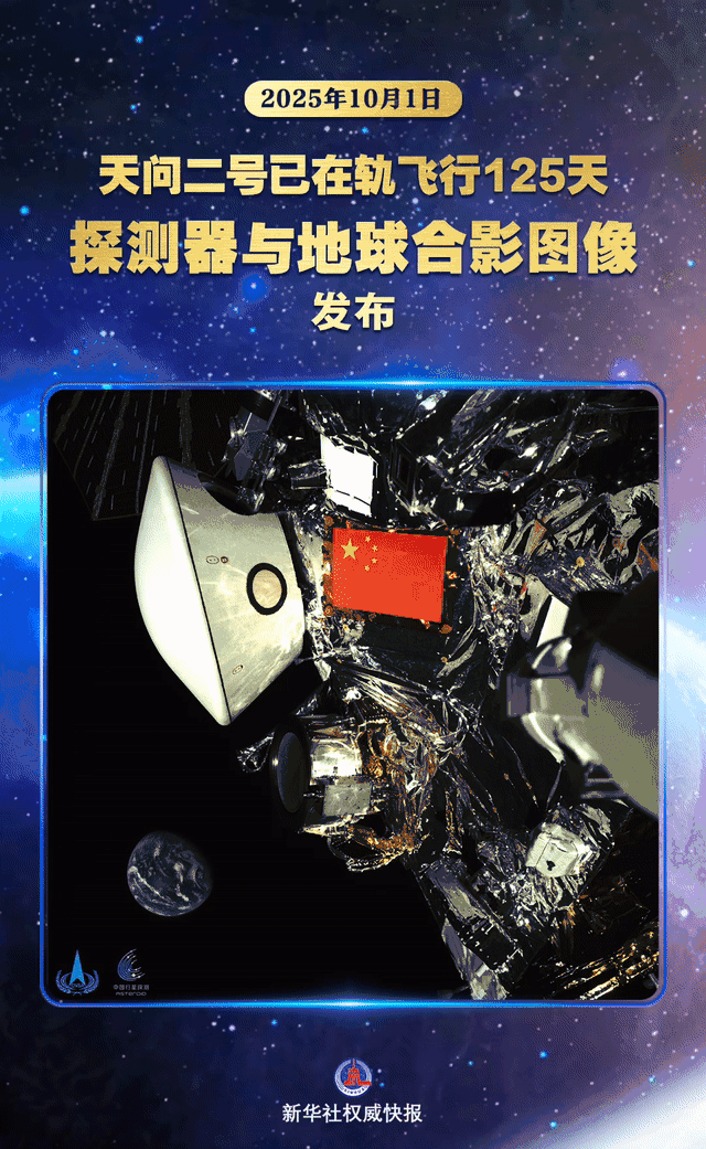 太空中的“中国红”!天问二号探测器与地球合影发布 详情
