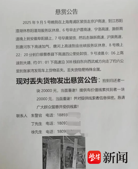 发布悬赏公告20多天,司机运输途中丢失的银砖依然杳无音信 详情