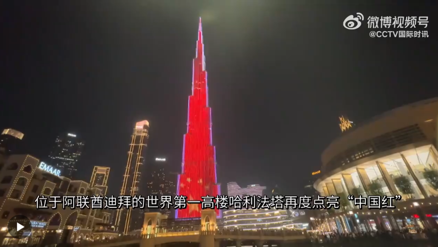 世界第一高楼点亮“中国红” 阿联酋多地向中国人民送上节日祝福 详情