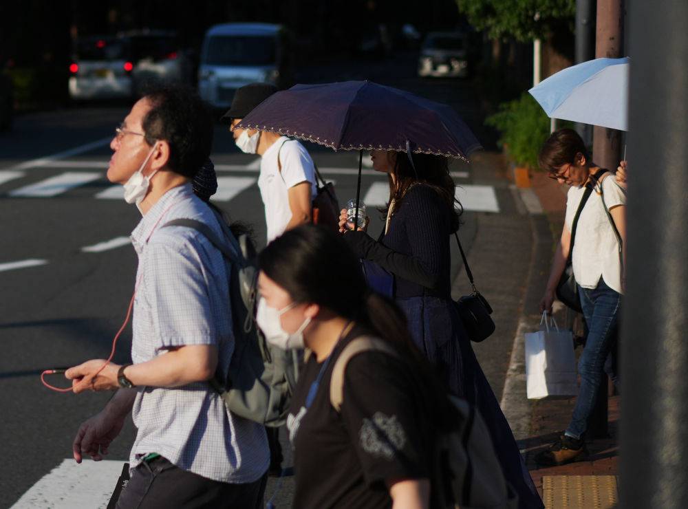 6月18日,在日本东京,行人在街头行走。新华社记者贾浩成摄