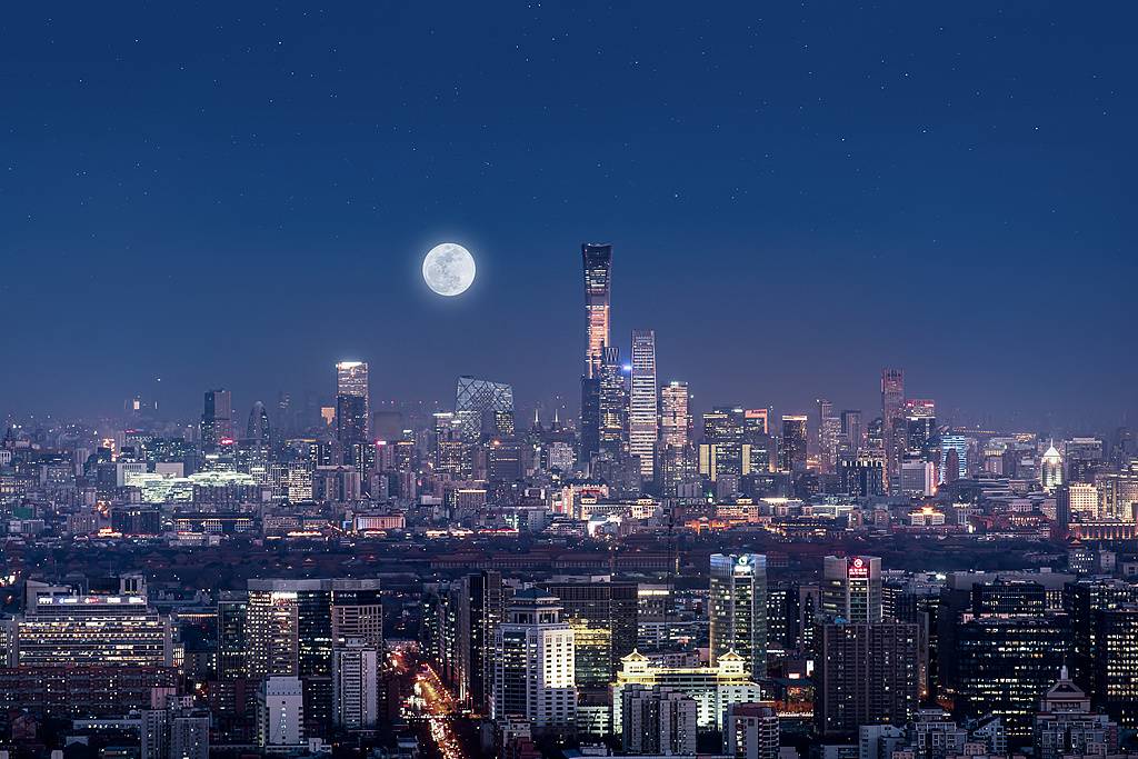 天上月圆,人间团圆。一轮圆月寄托着人们思念故乡、思念亲人之情,也寄托着期盼丰收和幸福之意,天上捧出一轮圆月,地上捧出无数花灯,天上月与地上灯交相辉映,良辰美景,丰悦可人。
