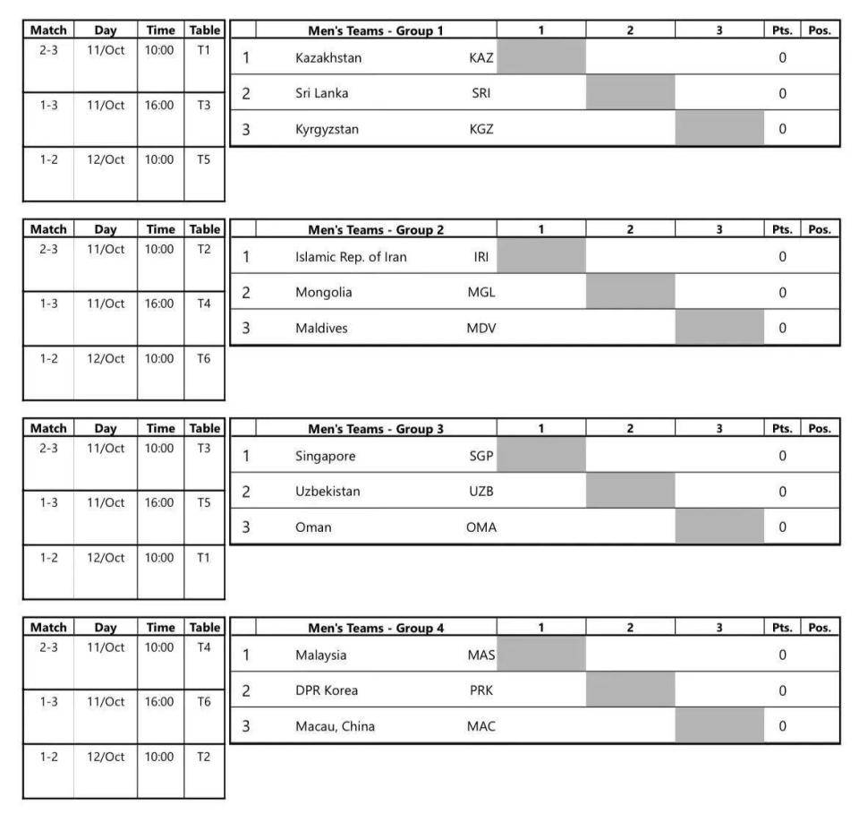 2025年乒乓球亚锦赛明日揭幕,小组赛签表出炉