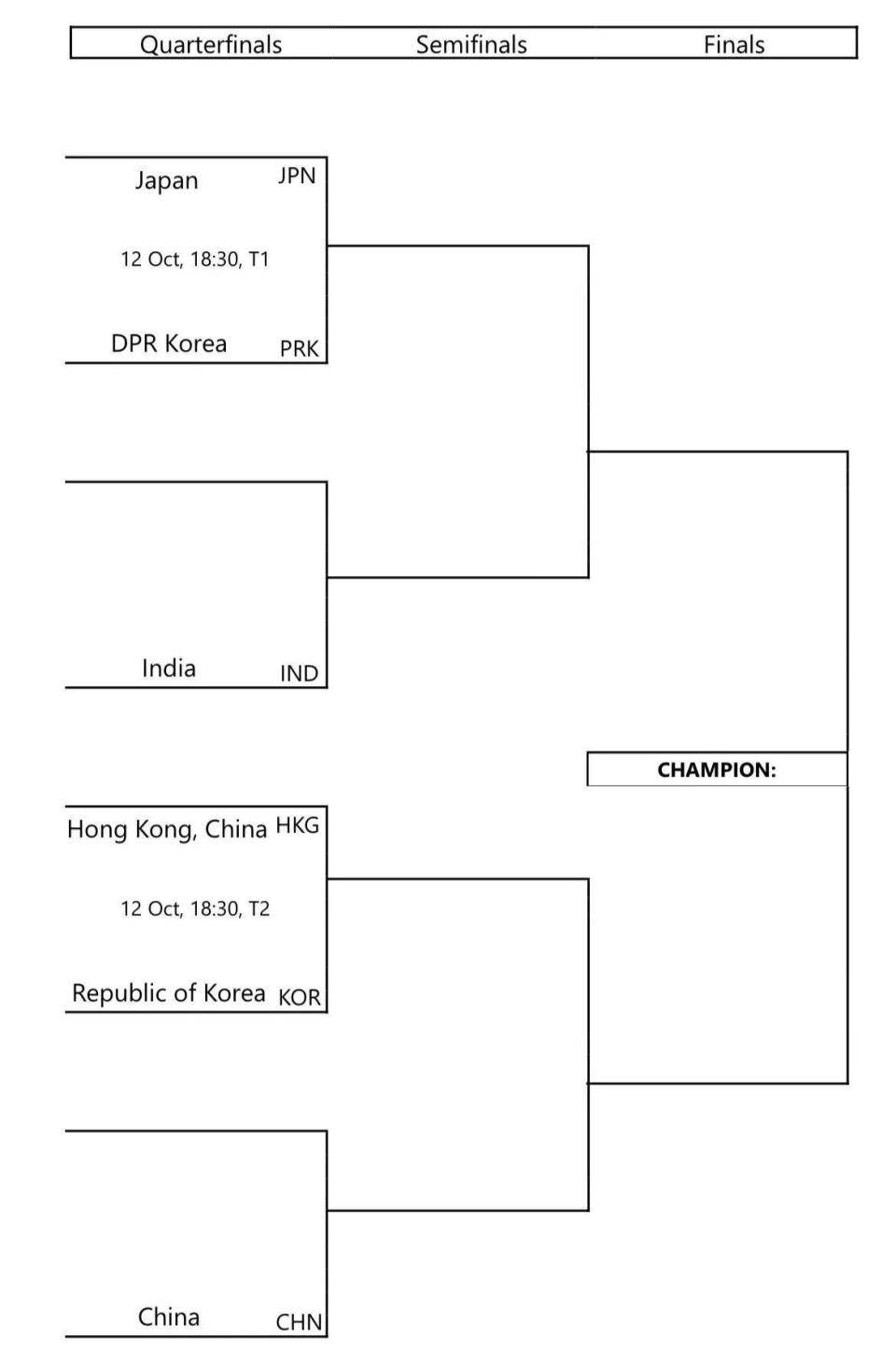 下半区:印度vs中国香港、中国台北vs小组赛晋级球队
