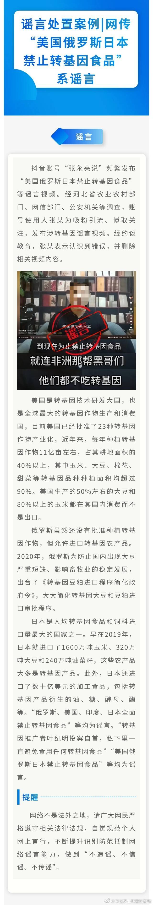 网传“美国俄罗斯日本禁止转基因食品”系谣言