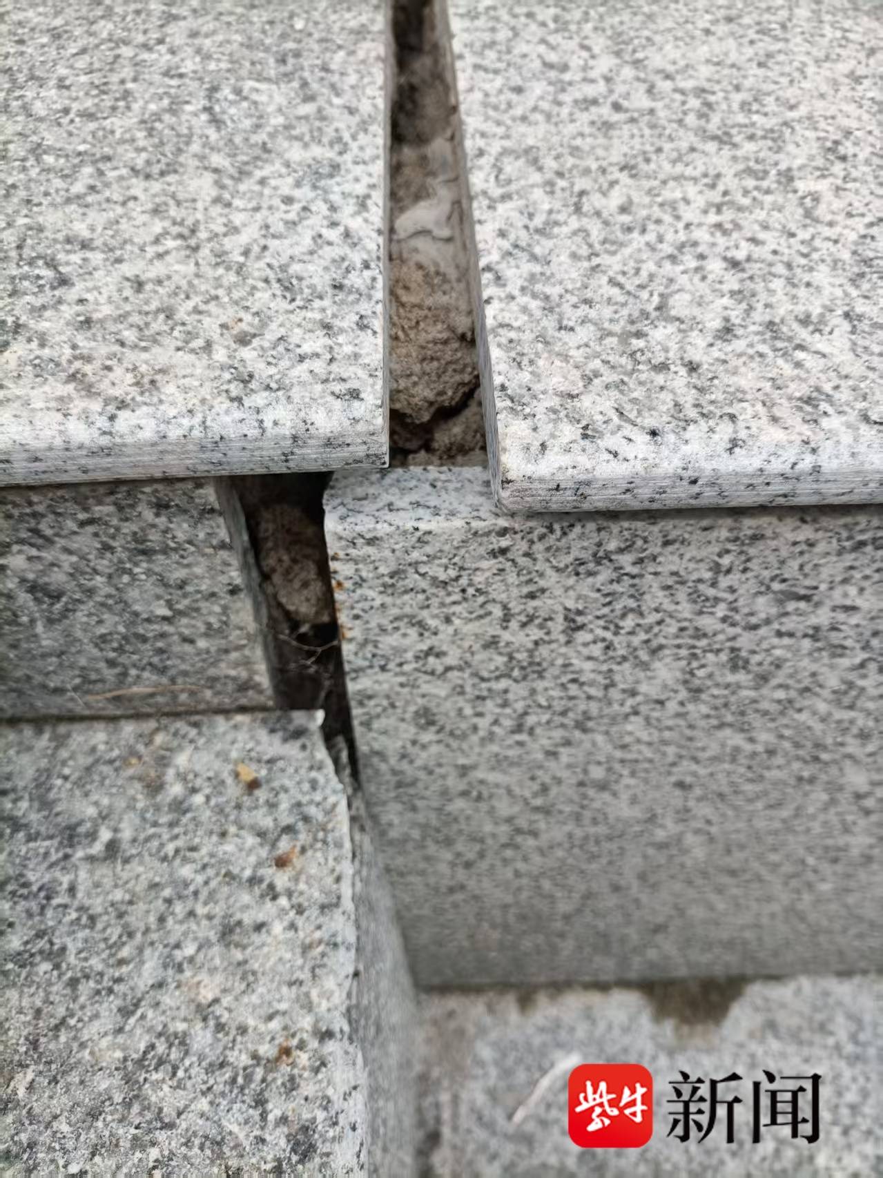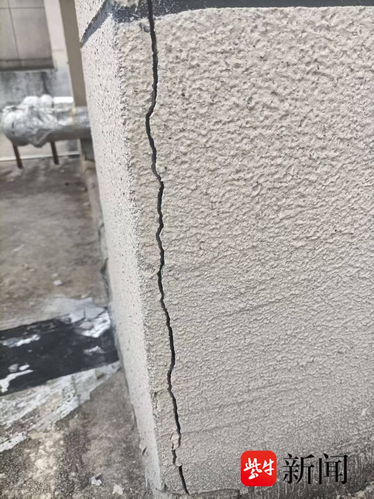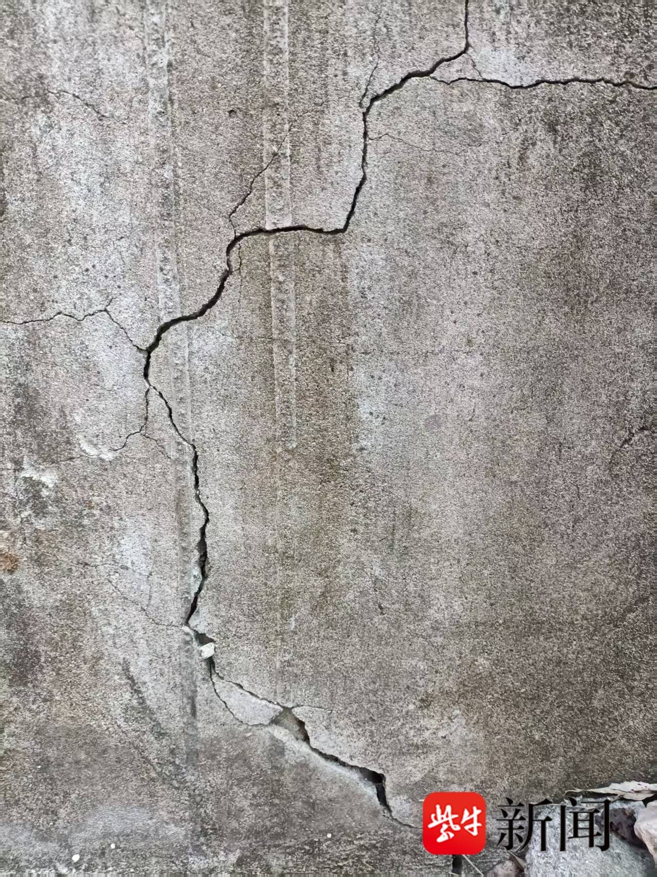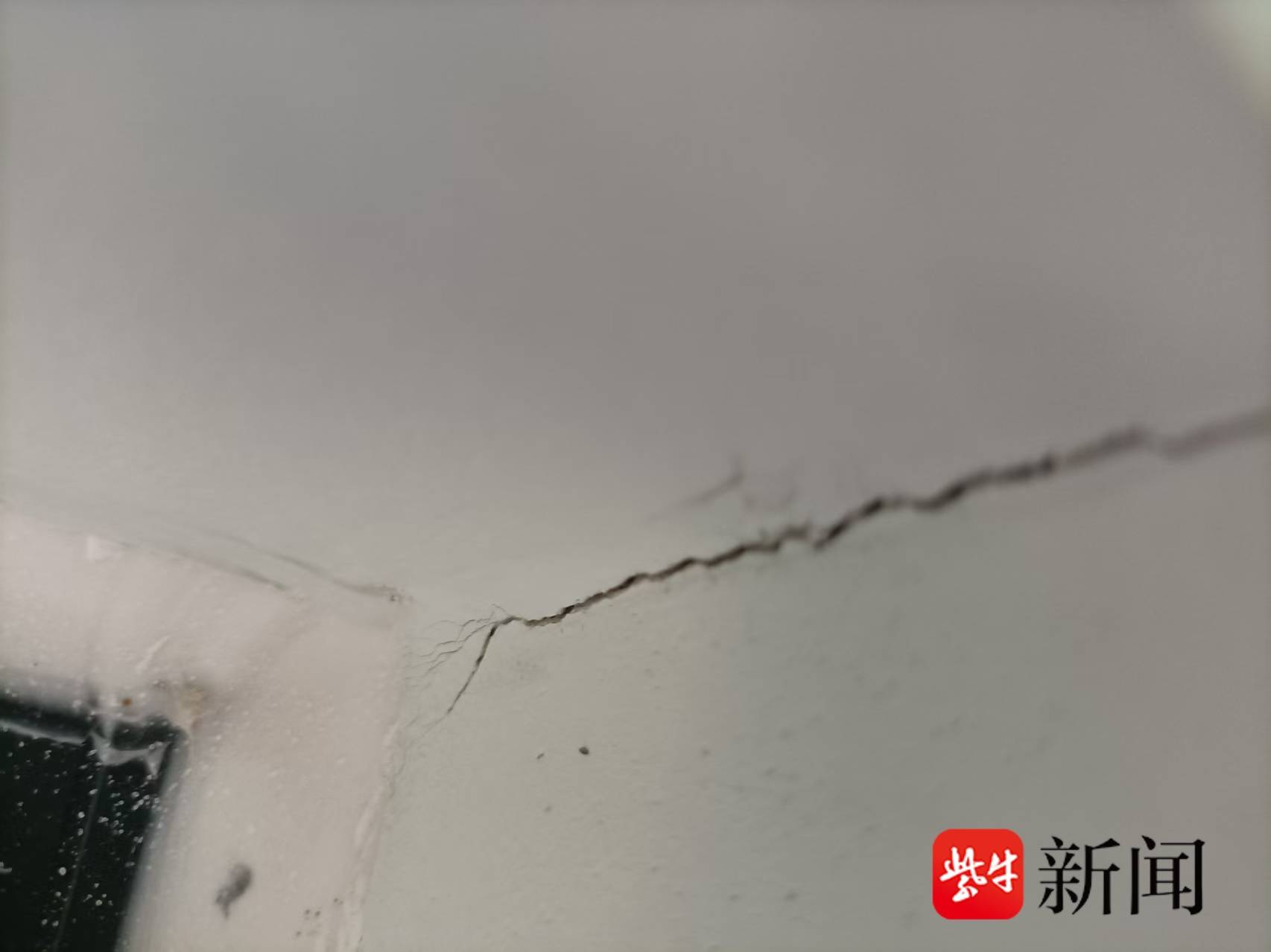 一位家住景秀蓝湾小区二期1号楼9楼的业主告诉扬子晚报紫牛新闻记者,黄某私挖地下室造成的房屋开裂至今尚未得到妥善解决,其家中的墙面出现纵横交错的裂缝,窗台大理石断裂渗水,小区地面也有多处裂缝。