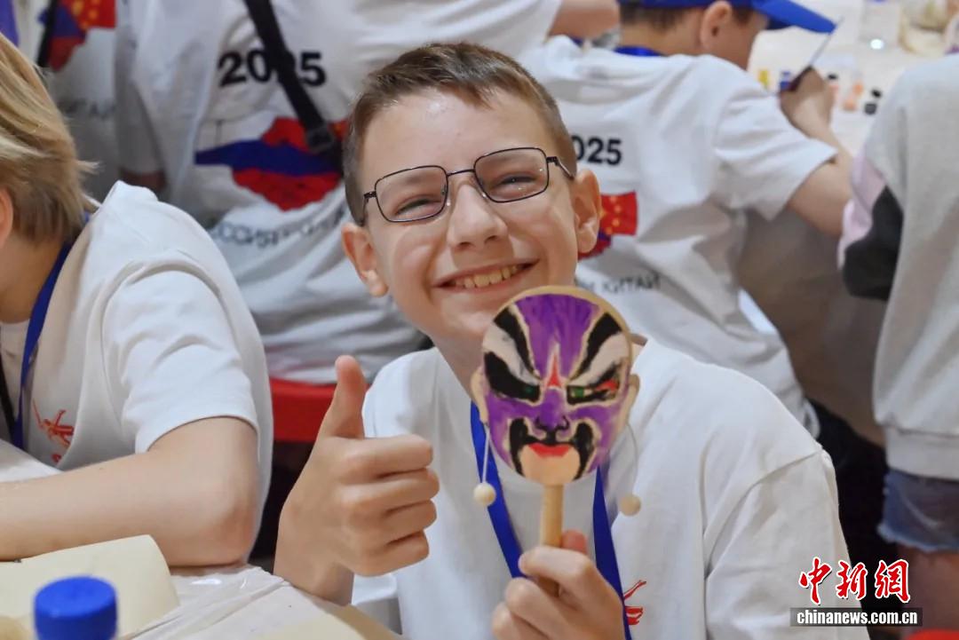 2025年6月14日,“感知吉林・青春同行”2025中俄青少年文化交流系列活动在长春启动。图为俄罗斯青少年展示京剧脸谱。 中新社记者 张瑶 摄