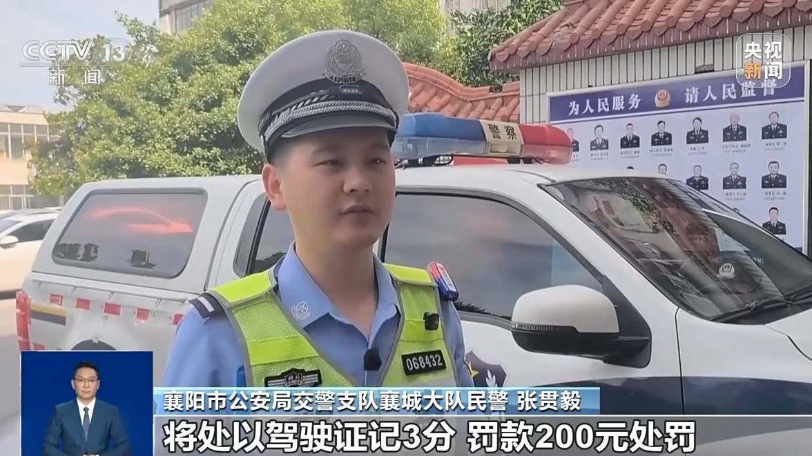 襄阳市公安局交警支队襄城大队民警 张贯毅:根据《中华人民共和国道路交通安全法》相关规定,白某存在驾车时有其他妨碍安全行车的行为,将处以驾驶证记3分、罚款200元处罚。