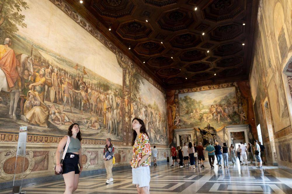 8月3日,在意大利罗马,人们在卡皮托林博物馆参观。新华社记者李京摄