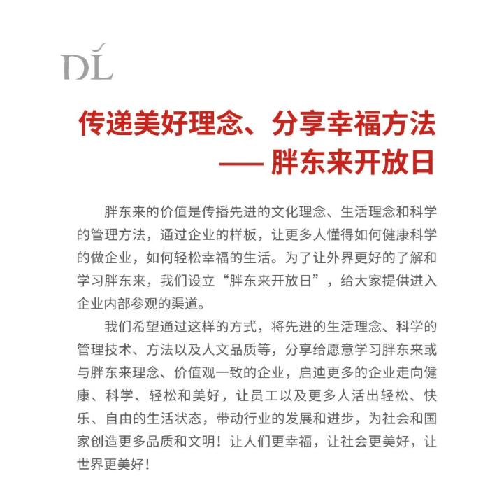根据开放日具体实施细则显示,开放时间自2025年11月1日起,每月10日、20日,开放对象为企业级学习参观,参访范围为“产业园+天使城+时代广场”。参与人数每批次小于等于15人,同一企业最多预约五人,通过系统预约并填报信息,收费标准为20000元/人。此外,细则里还明确申请基础条件有:喜欢胖东来理念,希望学习和运用胖东来理念;对胖东来有一定认知和了解;希望做品质企业、幸福企业,有造福员工和社会的愿望。