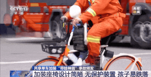 消防员表示,所谓的共享单车“儿童座椅”,除了缺少相应的防护措施外,随意加装座椅还改变了车辆的重心分布,影响车辆平衡,会给正常骑行带来安全隐患。