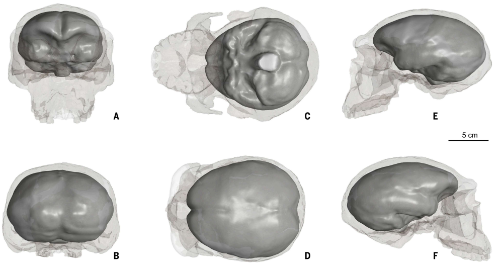 根据重建后的颅内模型,研究团队发现,“郧县人Ⅱ号”的脑容量竟超过1100毫升,对比现代人平均1350毫升的脑容量,以及整个龙人支系普遍较大的脑容量,表明该支系在百万年前就已具备相当的智力潜力。