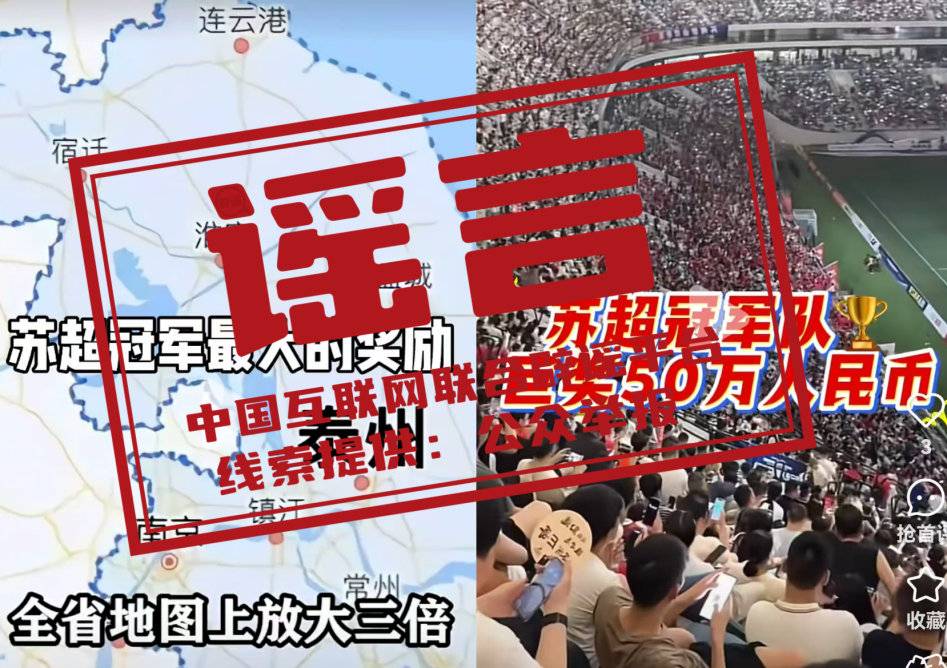 辟 谣 地图放大三个字号?奖金五十万?这些网传苏超冠军队奖励都是假的!