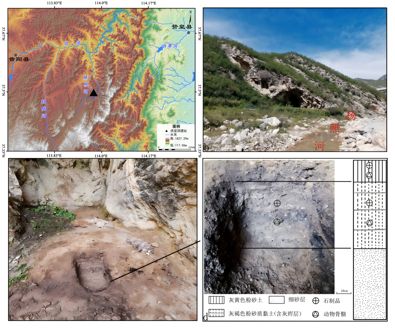 近日,山西省考古研究院对外公布了山西省晋中市昔阳县虎窑洞旧石器遗址调查资料。虎窑洞遗址内多个灰烬层、丰富的动物骨骼碎片、烧骨以及石制品等的存在,表明古人类曾较长时期占据使用洞穴作为栖身之所。