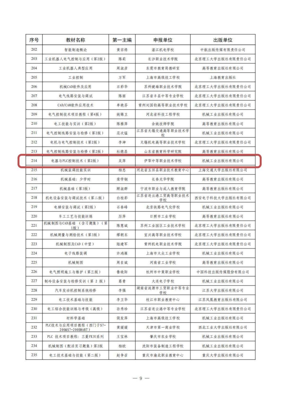 近日,伊犁河谷教育系统传来捷报:伊犁中等职业技术学校援疆教师吴萍(后方单位:江苏省靖江中等专业学校)主编的《电器与 PLC 控制技术》经教育部评审,成功入选“十四五”职业教育国家规划教材,实现该校建校以来国家级规划教材认定“零的突破”。