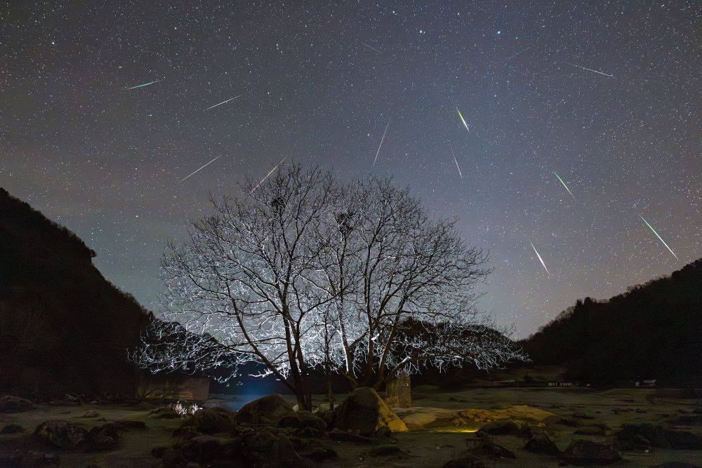 2023年11月19日,在甘肃陇南市拍摄的狮子座流星雨(多张叠加)。(鲁罡摄,星联CSVA供图)