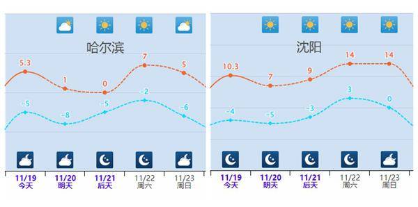 特别是东北地区多地,升温最为明显,22日至23日最高气温将会较常年11月下旬偏高10℃左右,哈尔滨22日最高气温7℃,长春22日最高气温8℃,沈阳22日最高气温可达14℃。
