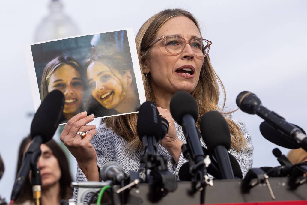斯凯·罗伯茨手持亲属弗吉尼亚·罗伯茨·朱弗雷的遗照,哽咽地讲述朱弗雷艰难的维权道路,恳请国会采取实际行动。“我姐姐不是你们操弄的政治工具。这些幸存者也不是你们的政治筹码。这些都是真实的故事、真实的创伤,现在该是你们停止空谈、付诸行动的时候了。请投下赞成票。”罗伯茨说道。