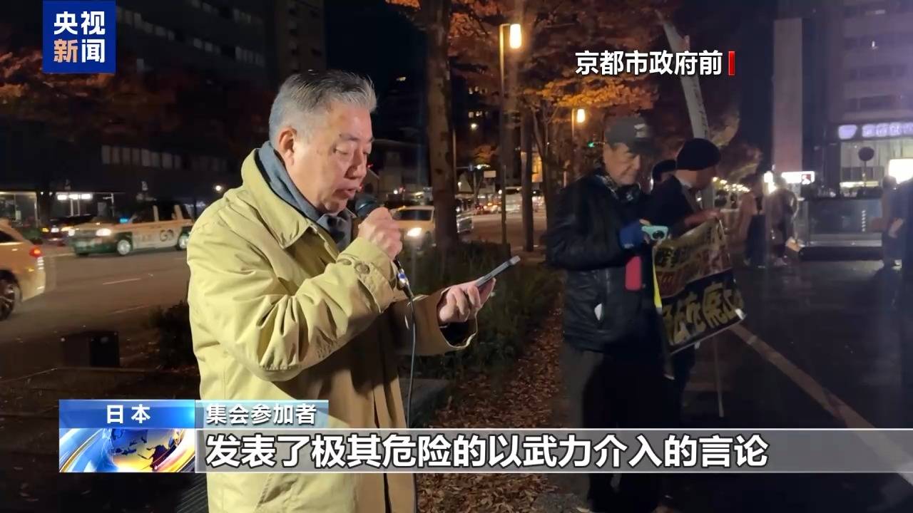 19日,在日本东京和京都两地,都有民众自发举行集会,抗议日本首相高市早苗近期的涉台错误言论,抗议日本政府强化西南地区军事部署。