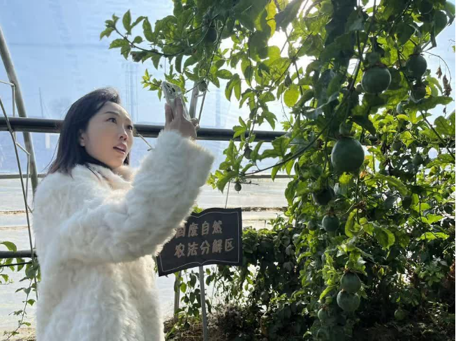 11月20日,“石榴花开 籽籽同心”铸牢中华民族共同体意识网络主题传播活动走进青铜峡市叶盛镇蒋滩村。农业产业园大棚里,百香果藤蔓间挂着青涩的果实,香蕉树宽大的叶片下,一串串香蕉泛着青绿,这些本在南方的热带水果,却在此“安家”,来自全国的20余名媒体记者和自媒体达人被眼前的景象吸引。“在西北还没见到挂果的香蕉树,这体验太新鲜了。”内蒙古阿拉善盟融媒体中心记者贺婷举起手机连拍数张照片。