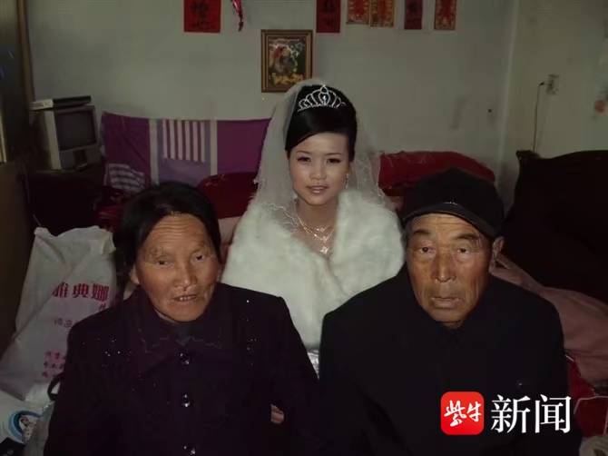 王彩文出嫁时和养父母的合影