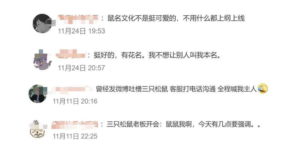 随后,三只松鼠通过官方社交媒体等多个渠道给出回应,表示这一命名方式是公司企业文化,内部还有“发货鼠”“客服鼠”等花名,“退货鼠”并非辱骂消费者。