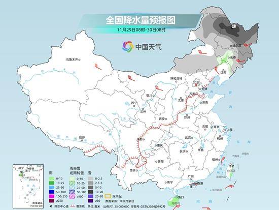 后天,内蒙古中东部、黑龙江西北部、吉林东部等地部分地区有小雪。广东西南部、广西东部、海南岛等地部分地区有小到中雨。