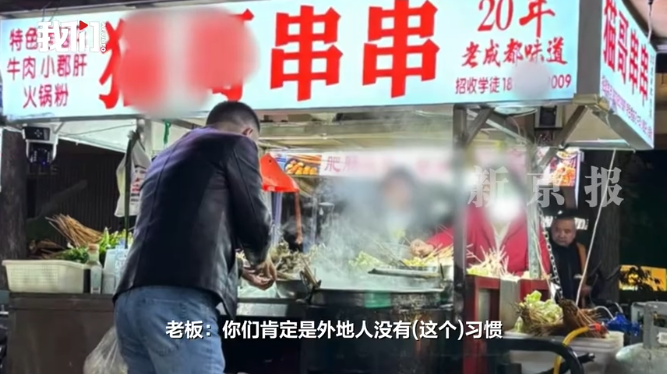 成都春熙路一串串摊被曝回收锅底,摊主称“都这样,死了我赔你”