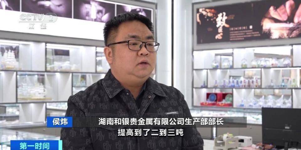 湖南和银贵金属有限公司生产部部长 侯炜:原料价格涨幅大约15%。工厂的月产量已经从原来的一吨多提高到两吨至三吨。最近投资银条的销量增长接近30%,尤其是一公斤规格的银条卖得最好。