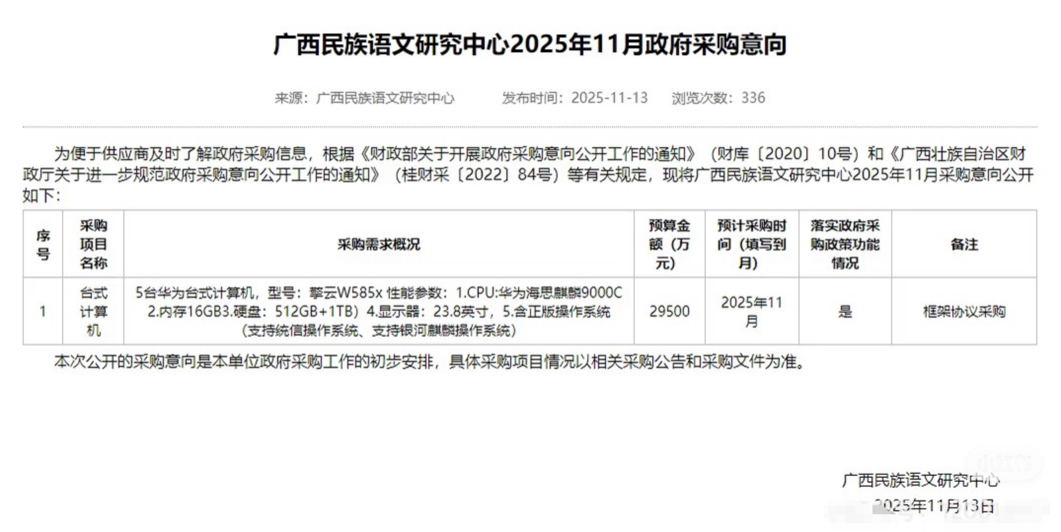 广西一单位采购电脑预算近7个亿,官方回应系细节错误