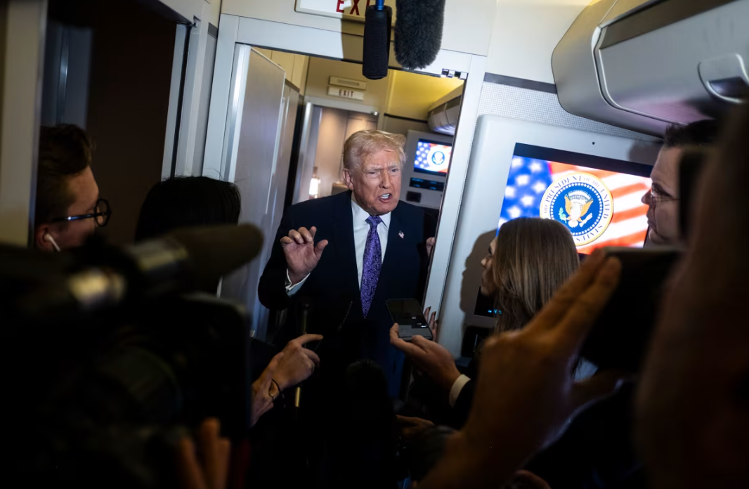 △特朗普11月30日在总统专机上说,他不希望对涉嫌运毒的船上的生还者进行二次打击(图源:美国有线电视新闻网)