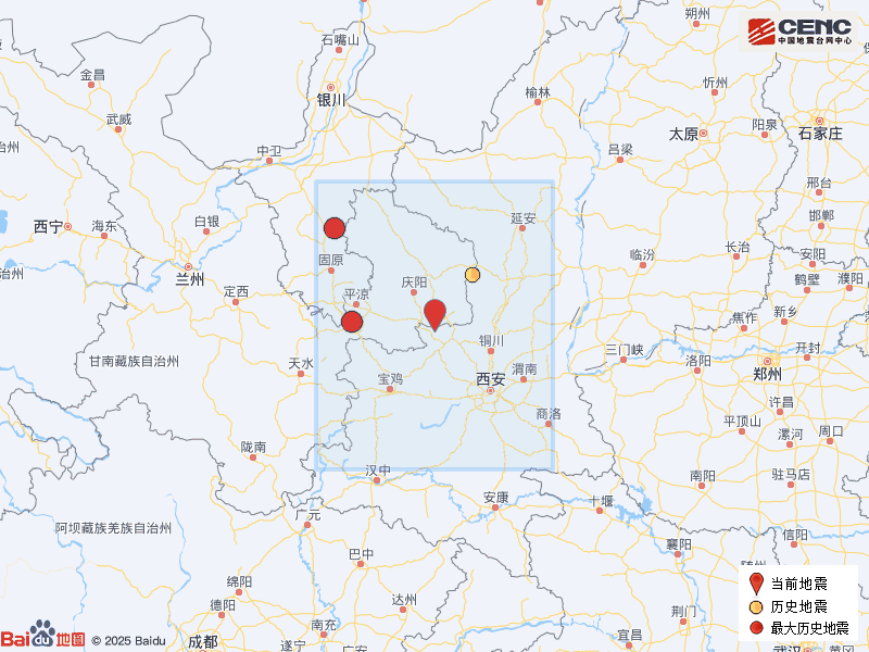 历史地震: 根据中国地震台网速报目录,震中周边200公里内近5年来发生3级以上地震共4次,最大地震分别是2023年11月18日在宁夏中卫市海原县发生的3.3级地震(距离本次震中209公里)和2022年1月30日在甘肃平凉市华亭市发生的3.3级地震(距离本次震中127公里),历史地震分布如图。
