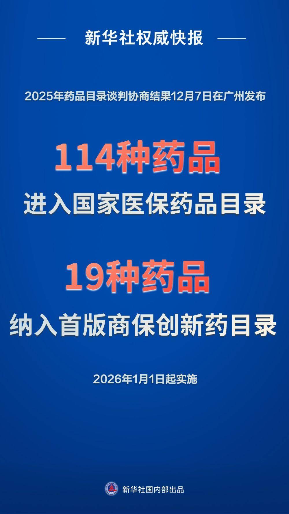 2025医保药品目录公布 新增药品114种 50种为1类创新药 详情