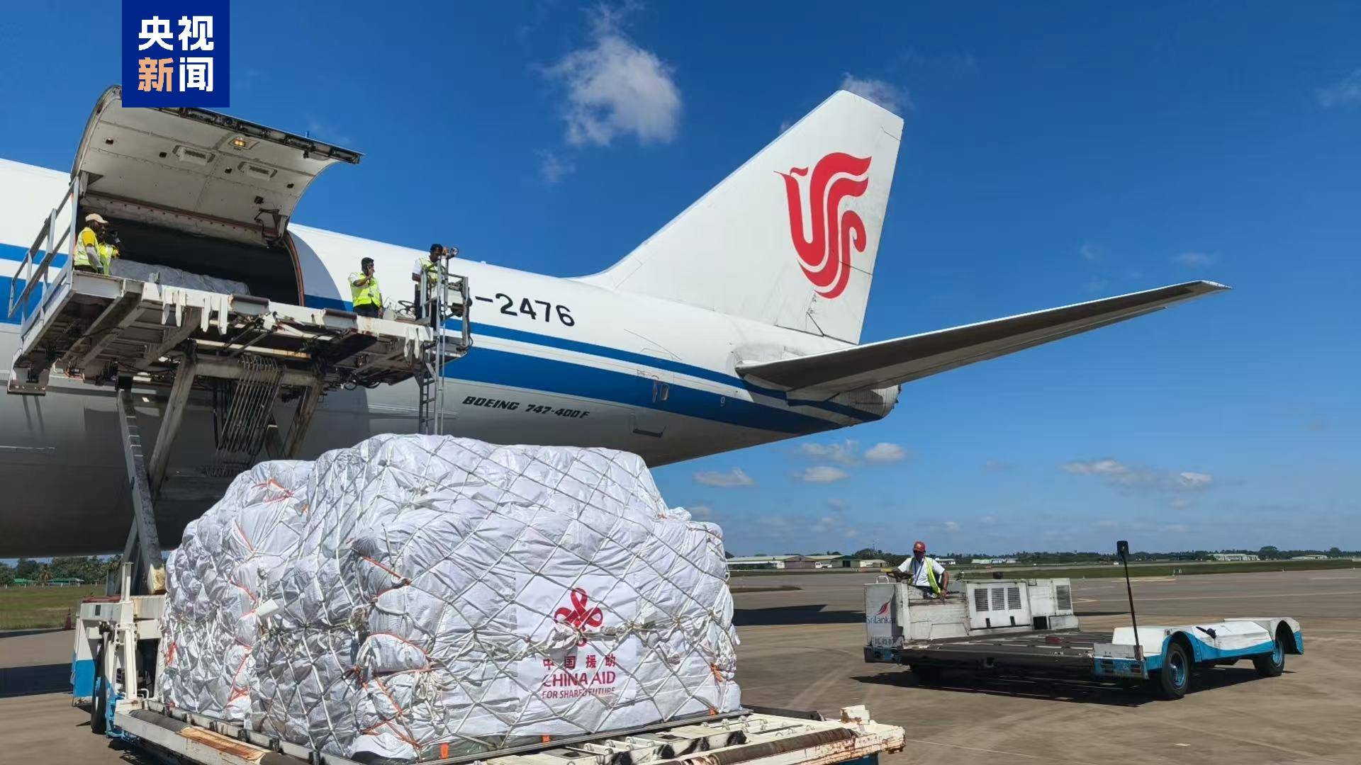 当地时间8日中午,中国政府向斯里兰卡提供的第一批抗洪救灾援助物资抵达斯里兰卡科伦坡。这批物资主要包括毯子、救生衣、床单、帐篷等。(总台记者 王建兵)