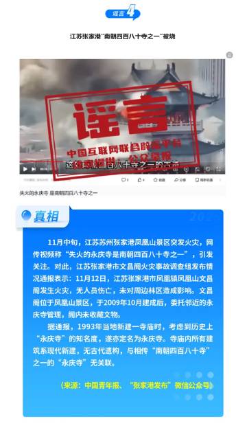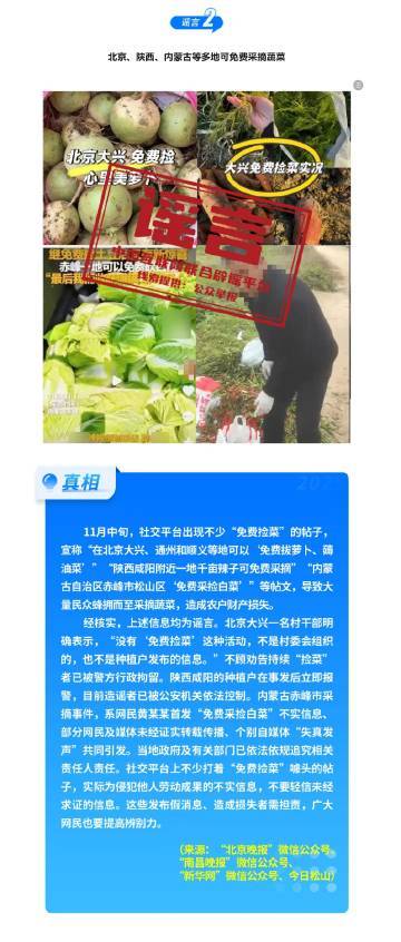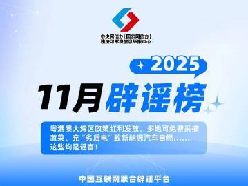谣言1:财政部发文“粤港澳大湾区政策红利发放”;谣言2:北京、陕西、内蒙古等多地可免费采摘蔬菜;谣言3:充“劣质电”导致新能源汽车自燃;谣言4:江苏张家港“南朝四百八十寺之一”被烧......中国互联网联合辟谣平台盘点2025年11月热传谣言,遏制谣言传播空间,净化网络生态,营造风清气正的网络环境。