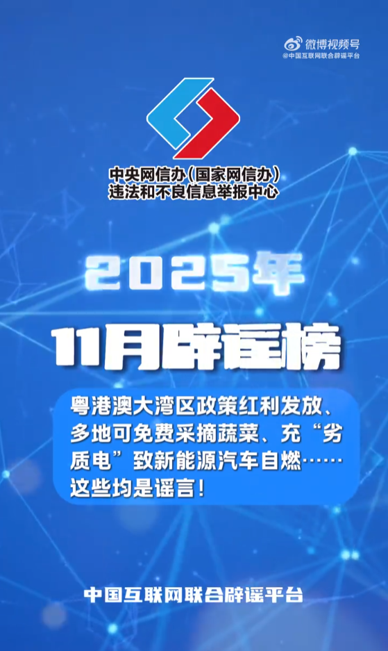 为澄清谬误、以正视听,中国互联网联合辟谣平台盘点2025年11月热传谣言,遏制谣言传播空间,净化网络生态,营造风清气正的网络环境。