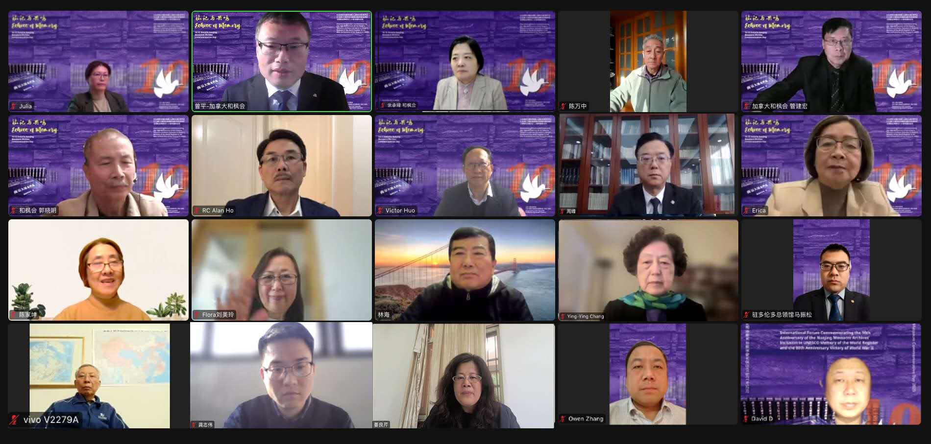 日前,由加拿大和枫会主办、加拿大黄埔后裔联谊会及多家团体协办的《铭记与共鸣》(Echoes of Memory)线上国际论坛隆重举行,纪念南京大屠杀死难同胞,纪念南京大屠杀档案列入联合国《世界记忆名录》10周年、加拿大安省设立南京大屠杀纪念日8周年,以及中国人民抗日战争暨世界反法西斯战争胜利80周年。
