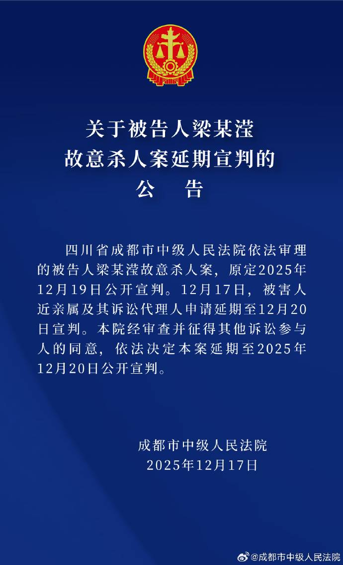 “成都27岁女子家门口遇害案”延期至12月20日宣判