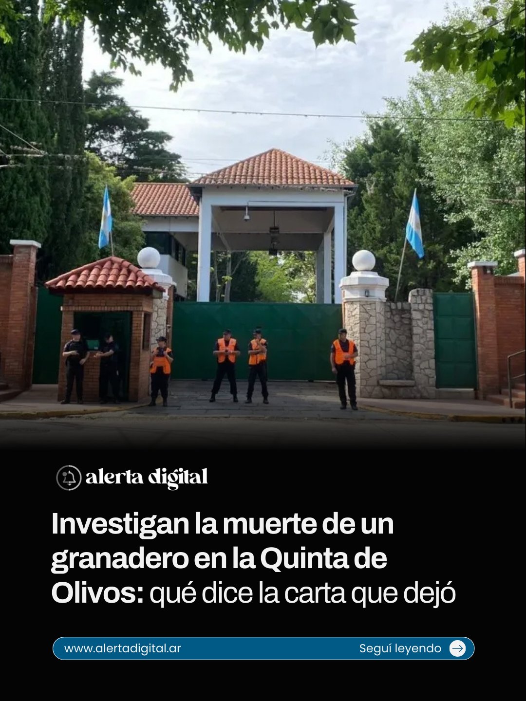 据阿根廷媒体报道,12月16日凌晨5时至5时30分间,21岁的哨兵罗德里格•阿德列斯•戈麦斯(Rodrigo Andrés Gómez)在总统府大院围墙内的一个岗亭值勤时,使用配发的步枪自杀。上级发现他在在岗哨位置未按时报告,过去检查时发现他头部中枪,已无生命迹象。戈麦斯于2025年7月入伍,隶属于阿根廷陆军“格兰纳德罗斯骑兵团”的一个中队,负责总统府区域的安保任务,包括周边和内部岗哨警戒。