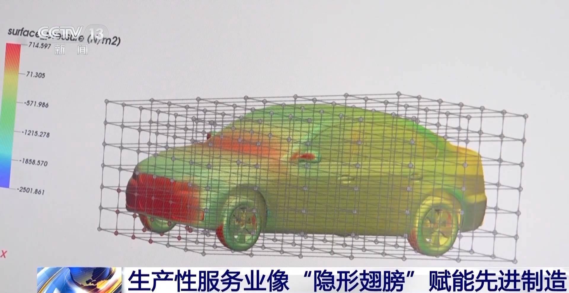 总台央视记者杨子清介绍,一辆新能源汽车在生产测试之前,将会先在仿真系统里开启它的一生。想对它的风阻进行优化,只需框选要优化的部分并提交。二十几秒的时间,就会根据现实情况提供最优解。