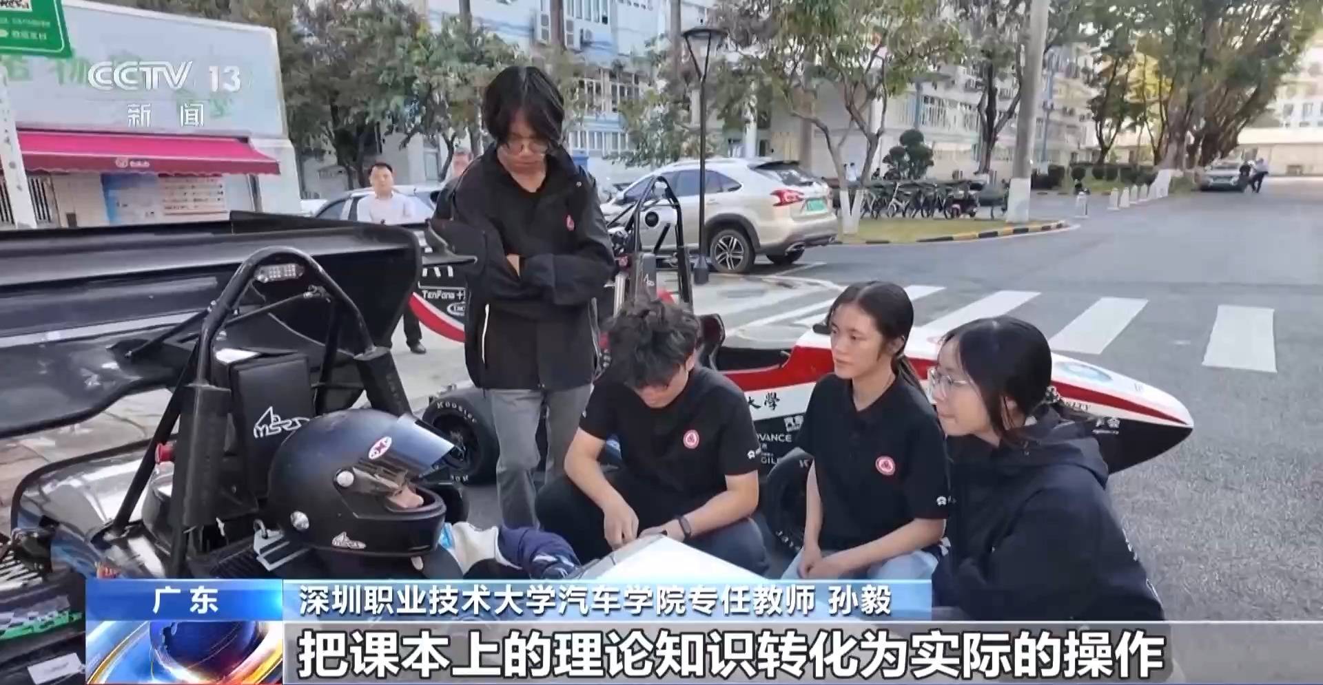 深圳职业技术大学汽车学院专任教师 孙毅:很多企业需要的是复合型的人才,学生自己设计、加工、制造、调试一台车,极大地锻炼他们的工程实践能力,把课本上的理论知识转化为实际的操作。他们和企业的衔接度也会提高,竞争力是非常强。