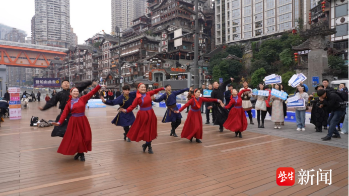 12月27日上午,内蒙古呼伦贝尔市文旅推介团在重庆地标洪崖洞与国泰艺术中心开展快闪路演活动,以热情的歌舞和丰富的物产文创,向山城市民发出冬季邀约。28日上午,呼伦贝尔市文旅推介团在成都市东郊记忆进行路演。乌兰牧骑队员在街头,用柔美的舞姿、优美的旋律、嘹亮的歌喉与观众热情互动。