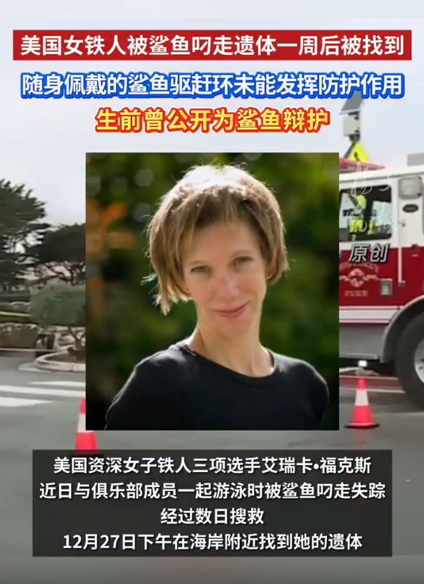美国女铁人被鲨鱼叼走一周后找到遗体,生前曾为鲨鱼辩护 详情