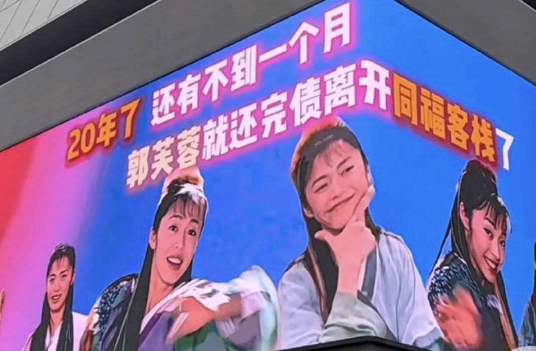 事实上,早在2025年底,网友们就自发开始了“赎身倒计时”,甚至在某户外大屏上出现了“20年了,还有不到一个月,郭芙蓉就还完债离开同福客栈了”的照片。12月14日,姚晨在微博中晒出这张投屏的照片并配文:“日子也是好起来了,20年后郭芙蓉都有大屏待遇了……”