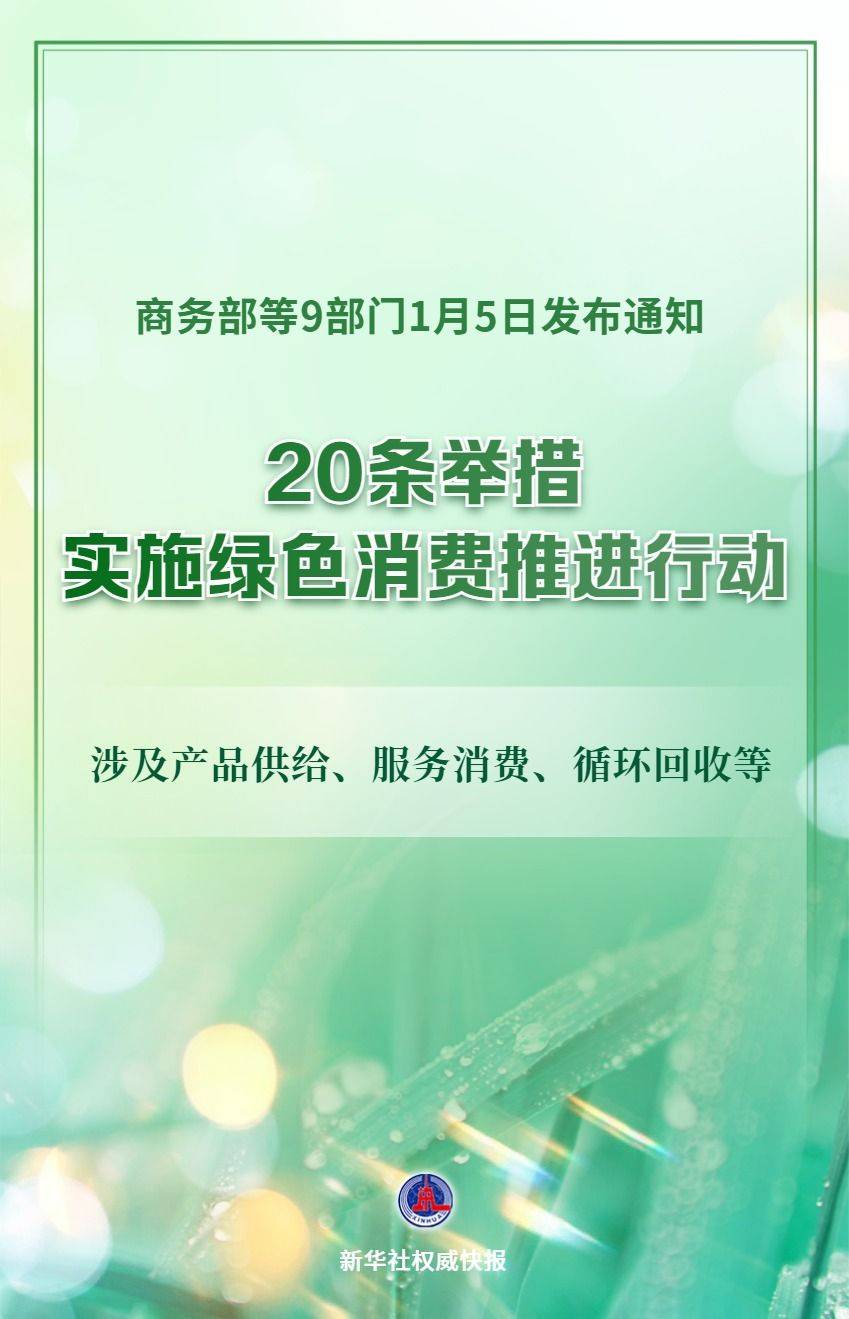 商务部等9部门关于实施绿色消费推进行动的通知1月5日对外发布。