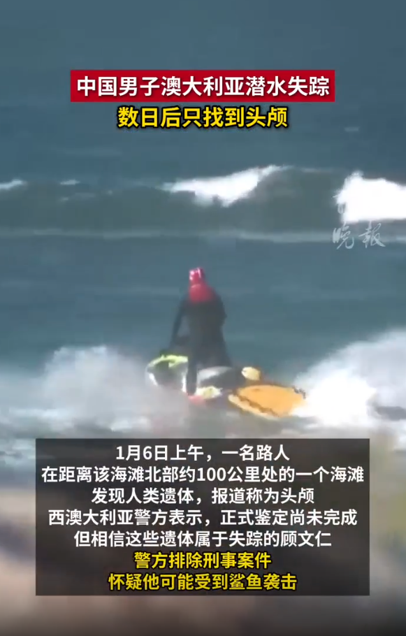 中国男子澳大利亚潜水失踪,数日后只找到头颅 详情