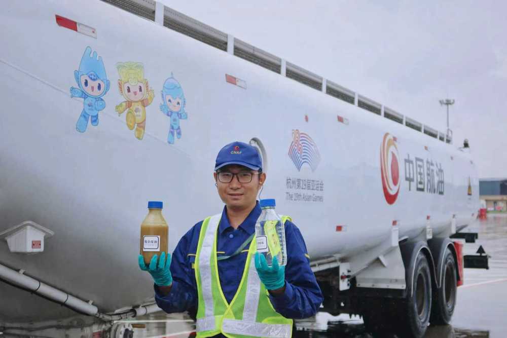 图为国产商用飞机首次加注生物航煤。(受访者供图)